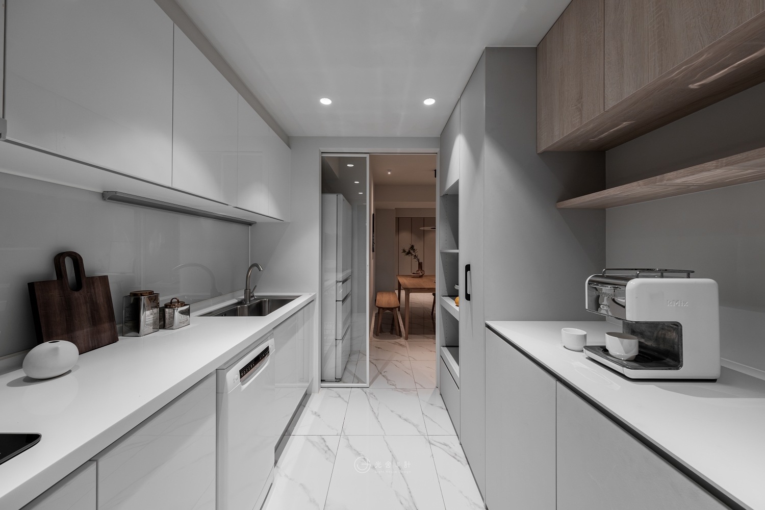 一旁的鐵件櫃體,也化為細膩的線條,